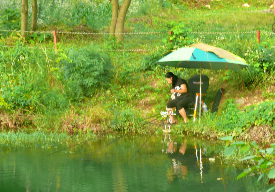 땡볕 더위에 대편성을 하고 낚시를 즐기는 마눌님입니다.