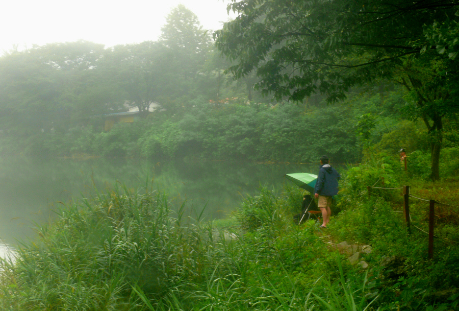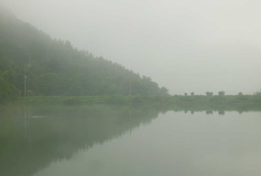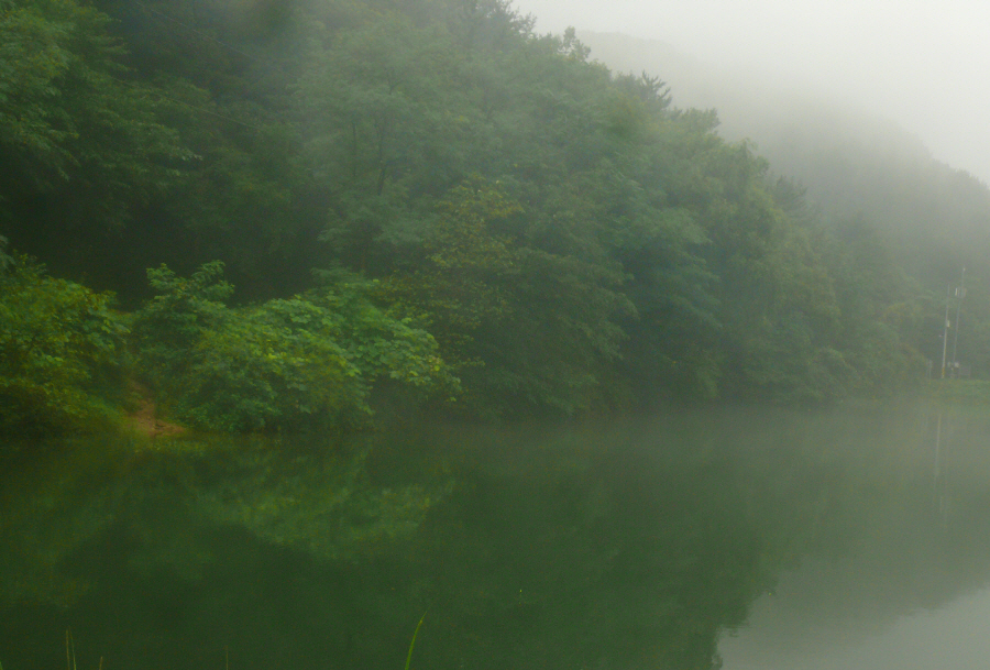 물안개 피어나는 아침에 일어나 상큼한 계곡냄새와 비에 젖은 나무잎에서 떨어지는 이슬방울이 싱그러운 느낌이 듭니다.