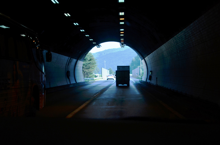 중부 고속도로의 터널에서...