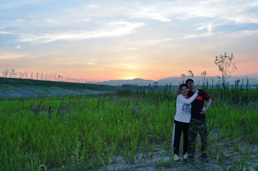 입큰붕어 반팔티를 입고 석양속에 집사람과 포즈를...ㅋㅋㅋ