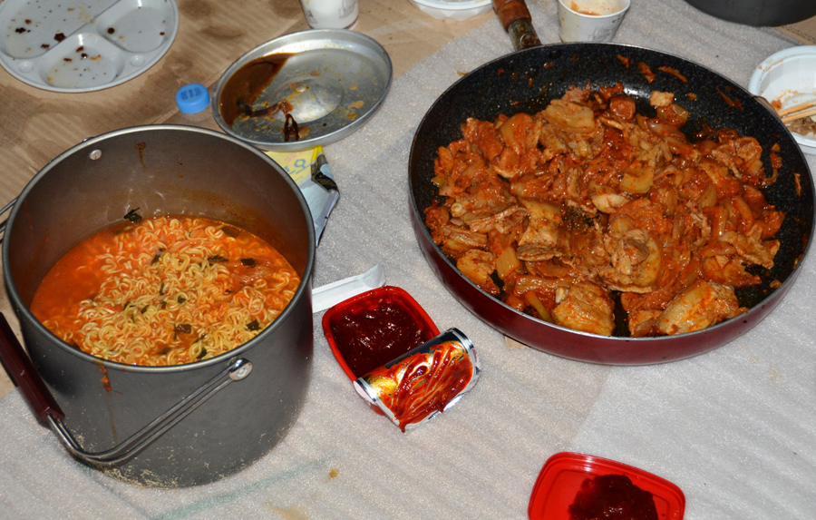 볶음국수와 라면으로 아침을 해결합니다.