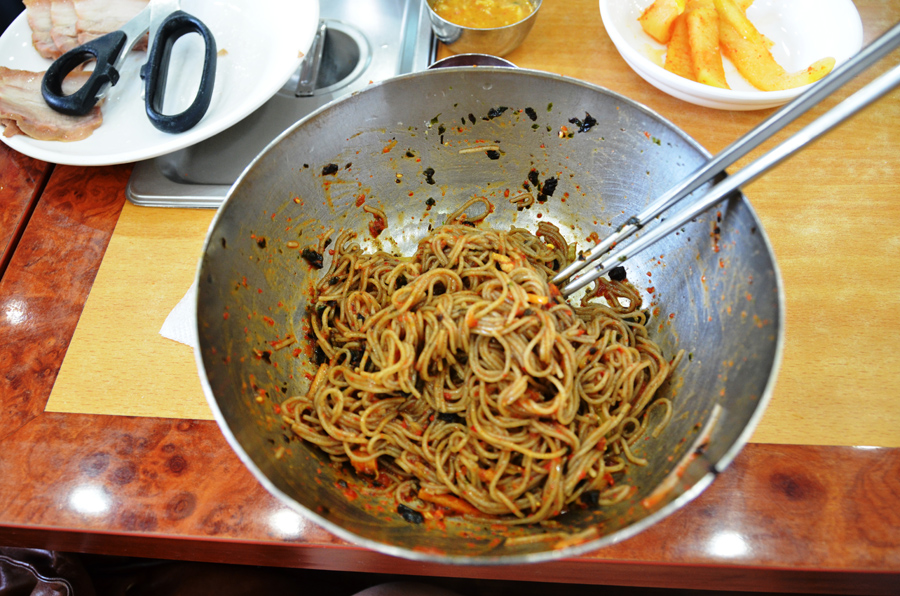막국수도 한 그릇씩 대접해드렸습니다.
