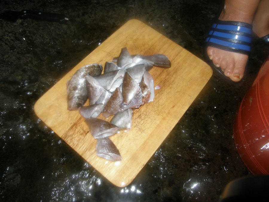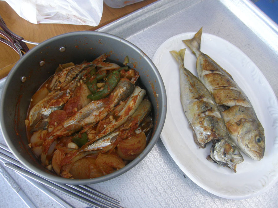 직접 잡은 생선으로 아침 반찬을 만들었습니다