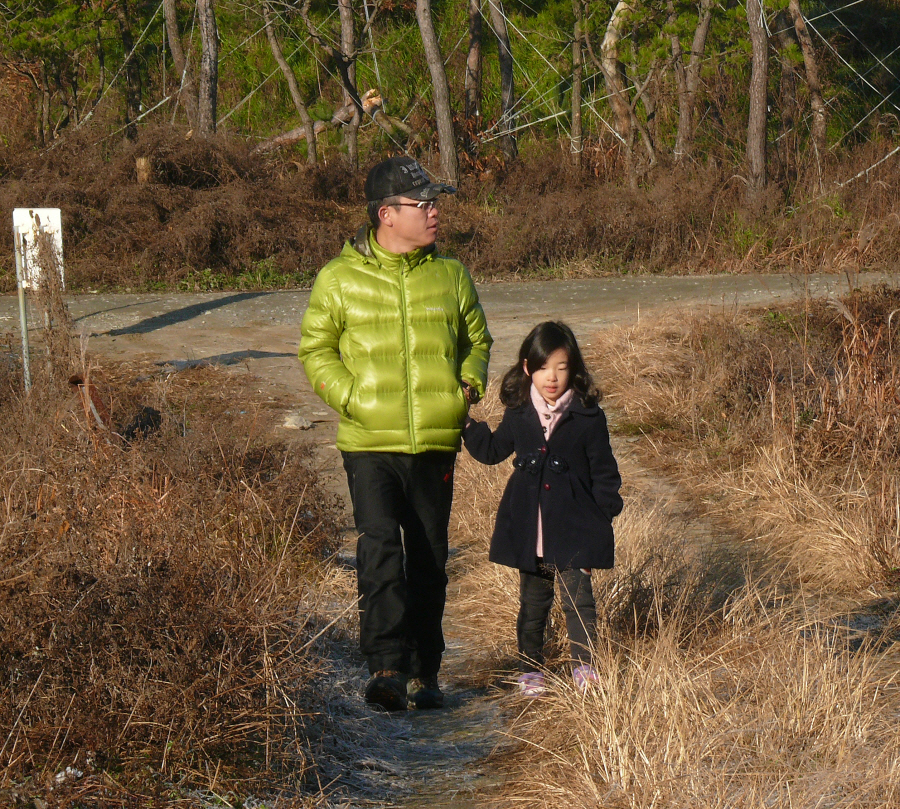 민서와 맨꽝님이 아침 산책 중입니다.