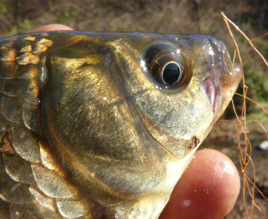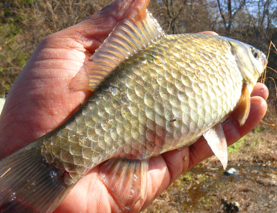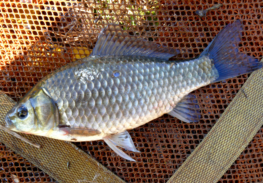 맨꽝님이 새우낚시로 처음 걸어낸 붕어입니다.