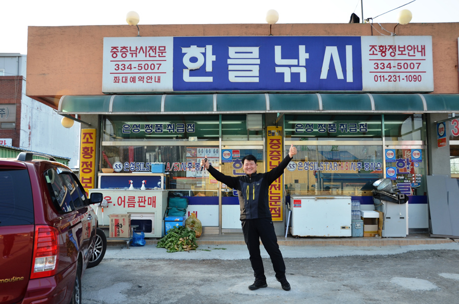 얼추 채비를 마추고 나니 해거름이 되어가는데 주문한 닭볶음탕 3마리를 가져다 주십니다.