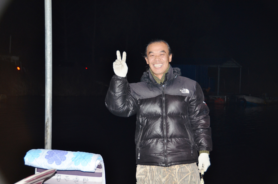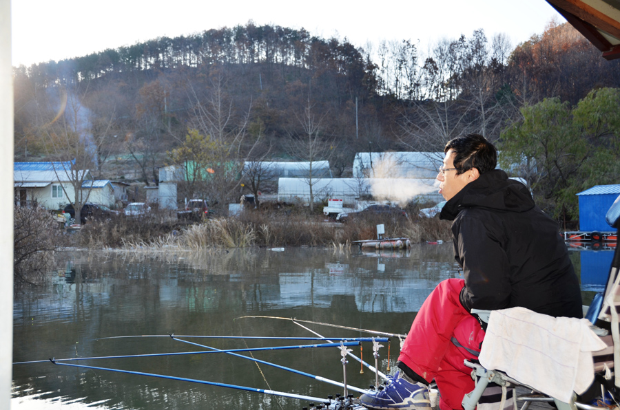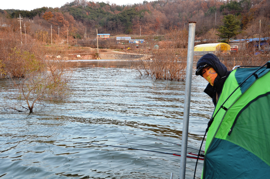 좌대 난방이 너무나 뜨거워 몸을 식힌다는 미수조사님.ㅎㅎㅎ