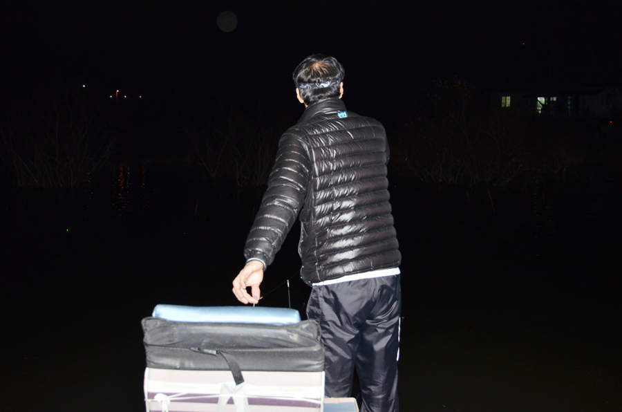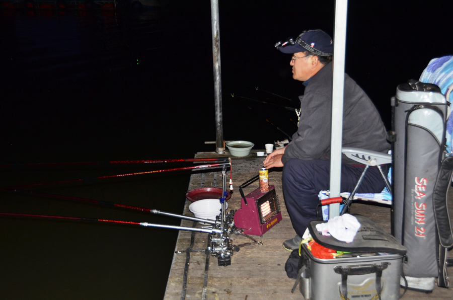 모두들 푸짐한 저녁을 먹고 각자의 자리에서 낚시를 합니다~