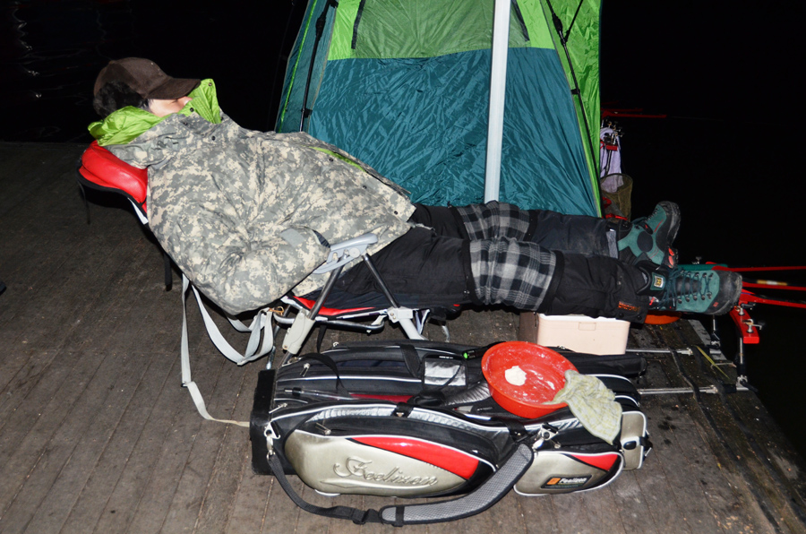 끝장맨 올가도 잠을 청하고 낚싯대만 자리를 지킵니다.