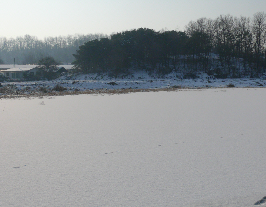 상류권 부들수초대는 눈에 잔뜩 덮혀 있는 상태였습니다.
