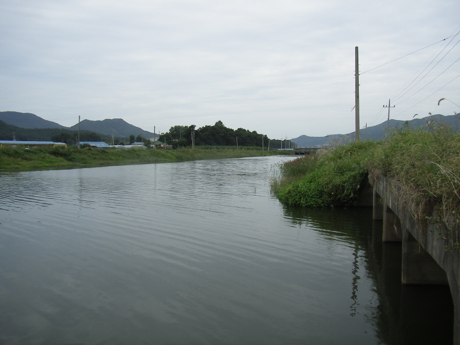제방에서 최상류 쪽을 보고 수심이 너무 낮아요