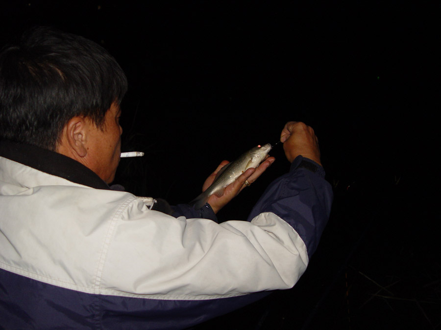 어둠이 내리고 나서 봉봉님이 가장 먼저 붕어를 걸어 내었습니다