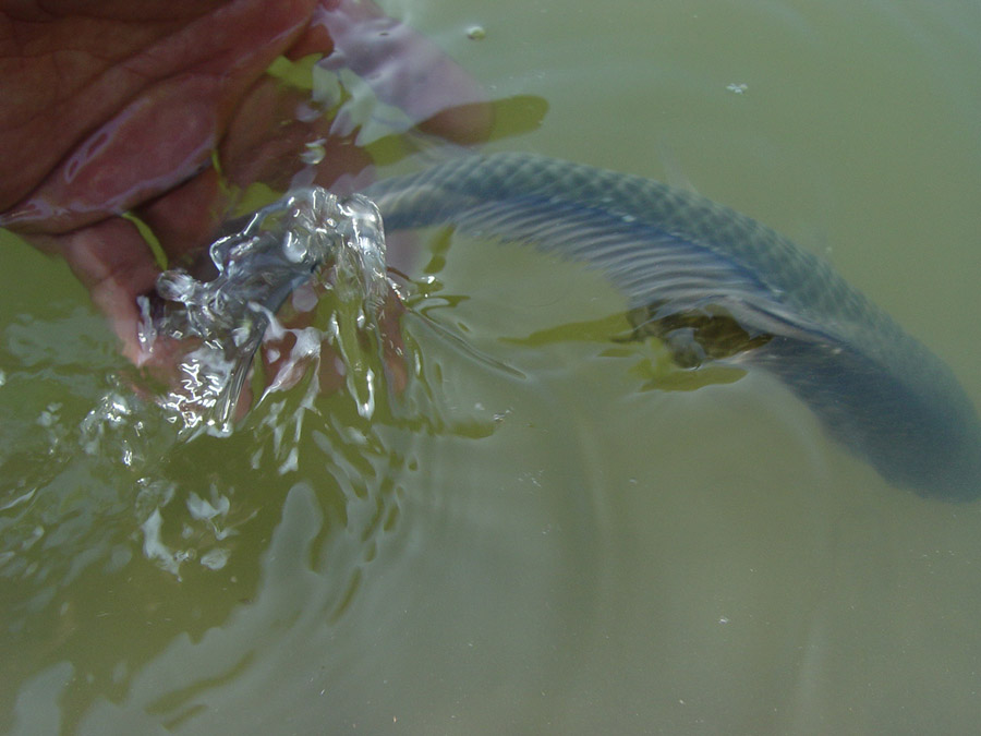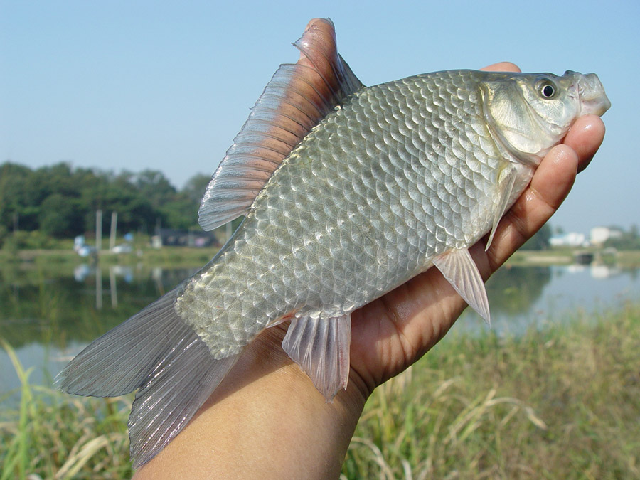 늘씬한 몸매를 자랑하는 대관지 붕어를 들고 한 컷