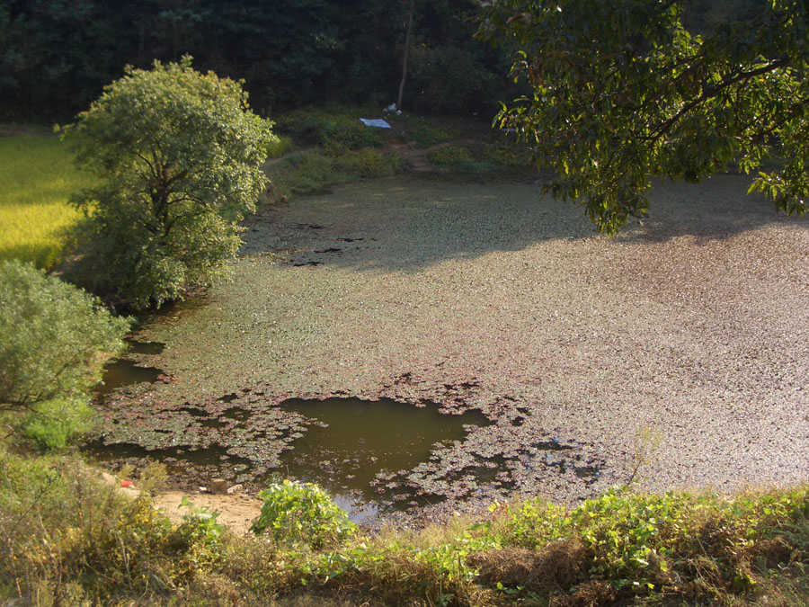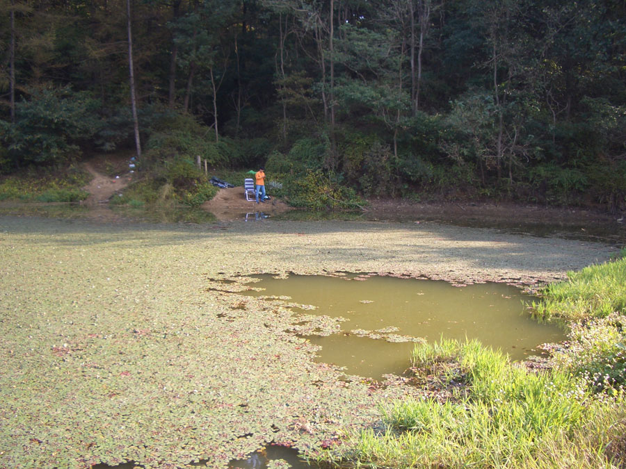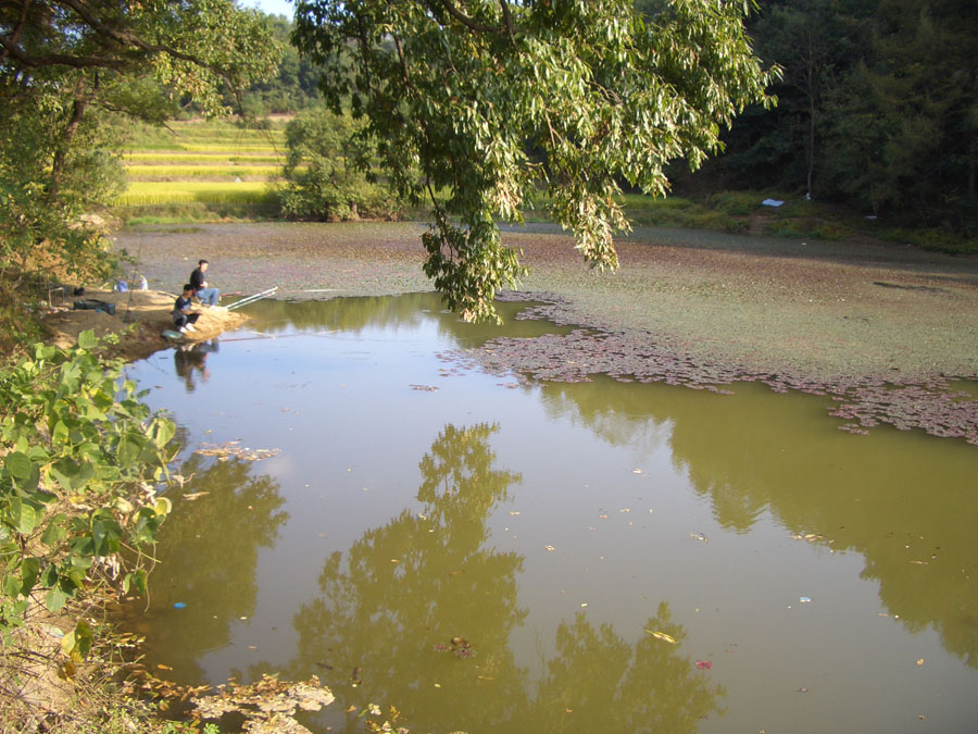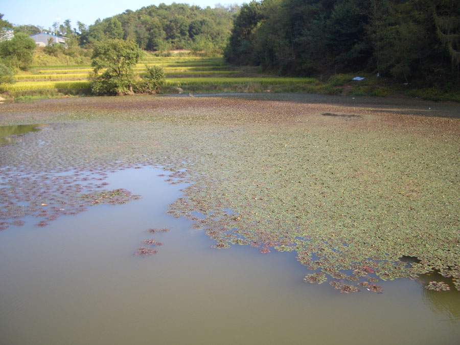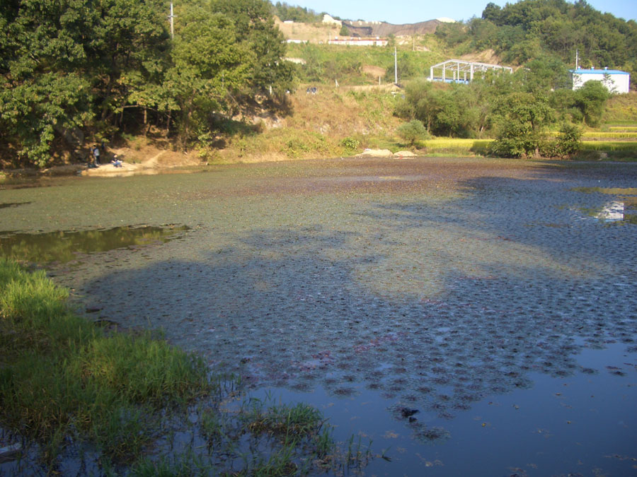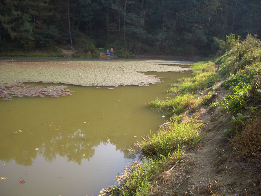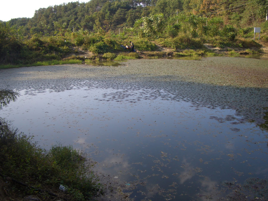 말만 듣고 처음 찾아간 소류지는 1,000여평 규모로 현재는 물이 빠져 상류권 90cm. 하류권 2.5m의 수심을 보였습니다.