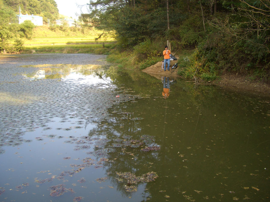 다음날 추석 음식 장만에 바쁜 마눌님 대신 아이들을 보는 보모로 역할을 다하다 오후 3시경 겨우 잠깐 낚시를 친구 흑월과 청원군 소재 준계곡형 소류지를 찾았습니다.