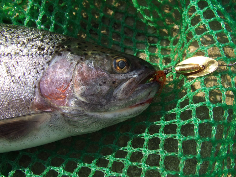 나오라는 꺽지는 않나오고 35cm급 송어 3마리가 스피너를 먹고 나왔습니다.^^::