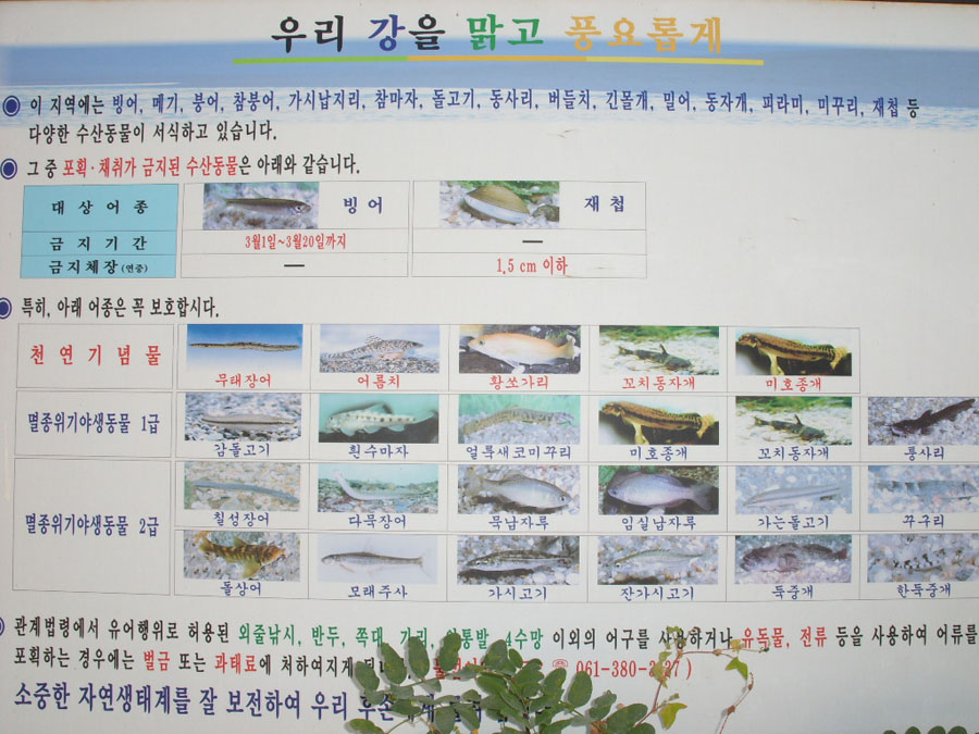 담양댐에서 발원해 담양을 거쳐 봉산면 앞으로 흐르는 수로로, 수로 폭이 100m정도 되고 수심도 3 ~ 5m로 깊어 잉어 자원이 풍부한 곳이다.