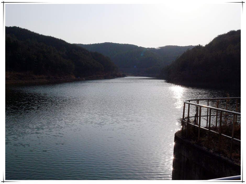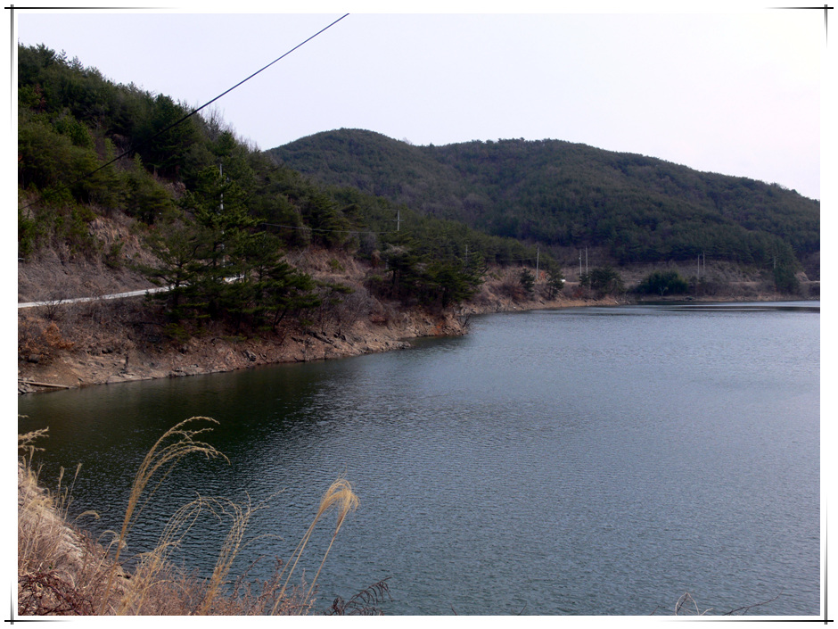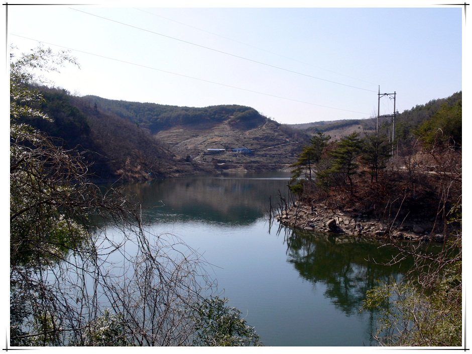 사천권에 위치한 계곡형 저수지... 제방에서 우측편을 바라보고...