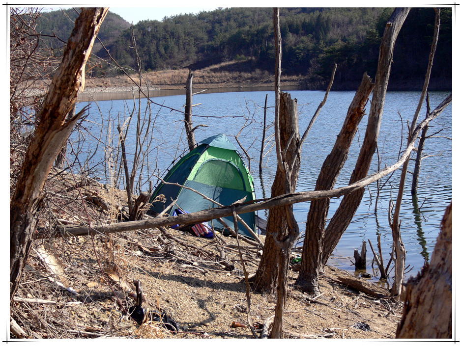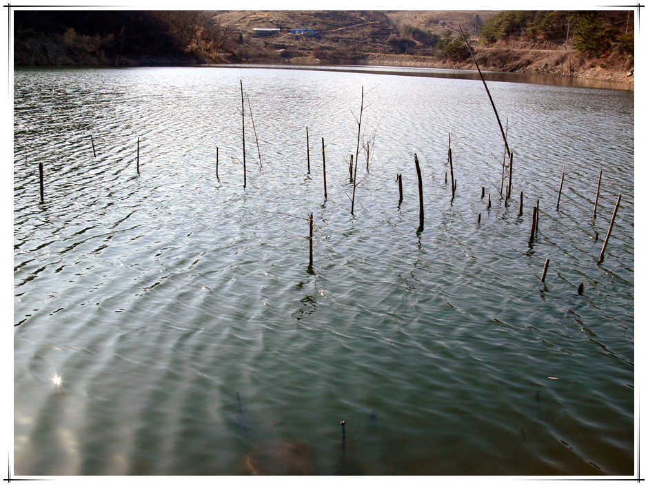수위가 약 5미터 가량 내려가 있어 물속에 잠겼던 수몰나무들이 머리를 내밀고 이곳에 대편성을 해달라고 호객행위를 하고 있다.^^