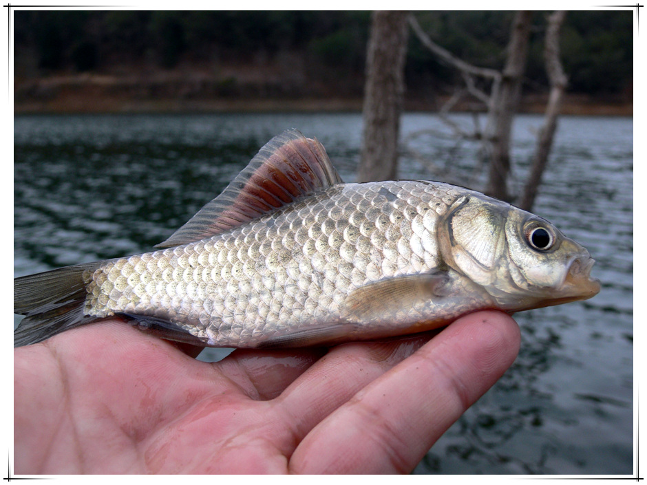깔짝이다 끌고 들어가는 입질에 챔질을 하니 4치급 붕어가 얼굴을 보여줘 찌맞춤을 가볍게 하여 다시 던진다.