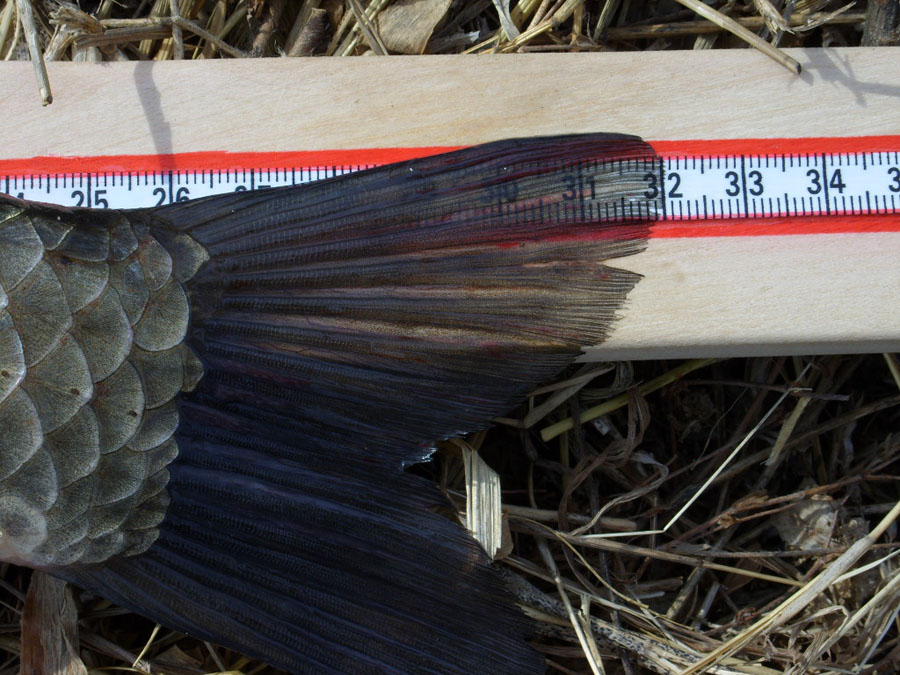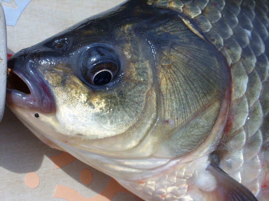 안상님이 차 문을 열면서 "형님!! 월척 붕어입니다" 하며 필자 앞에 32cm 붕어를 들이댄다.