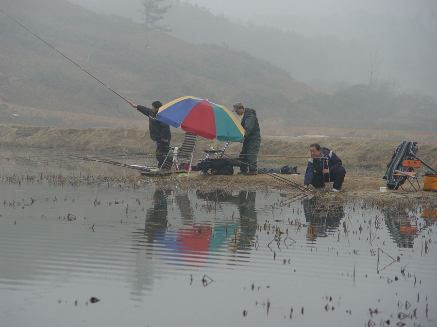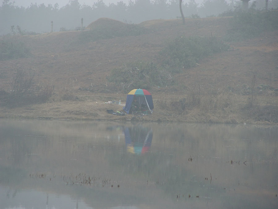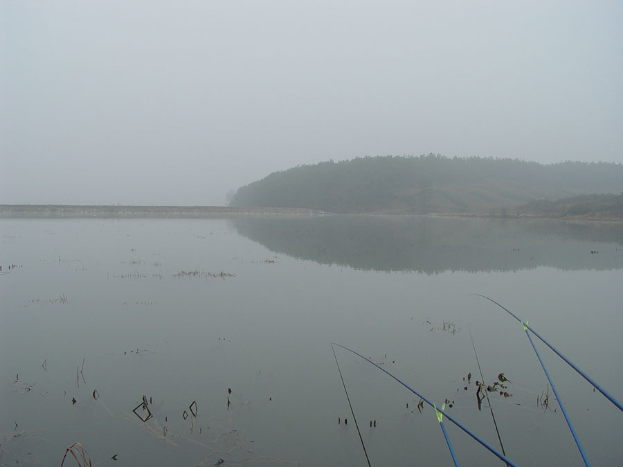 혹시나 하는 기대로 아침 입질을 기대하고 찌를 응시했는데, 안개가 너무껴서 캐미가 잘 보이지 않는다.