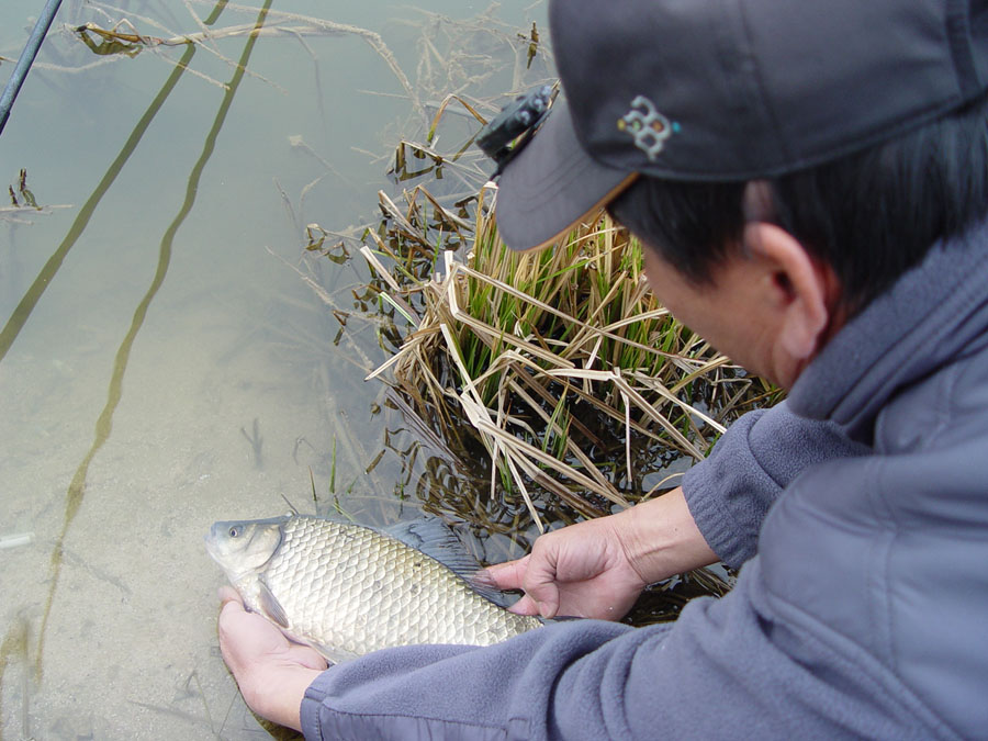 새우를 먹은 대물붕어가 얌전히 날 잡아 가세요 하고, 채비도 엉클지 않고 그냥 수초속에 가볍게 몸을 넣고 있다가
