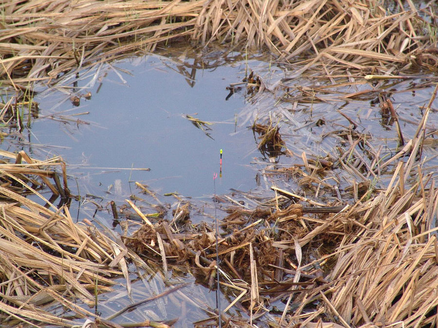 수초사이에 찌를 드리우고..