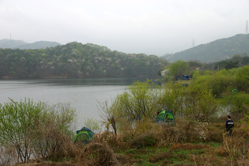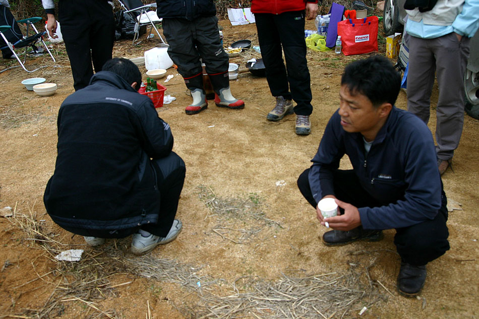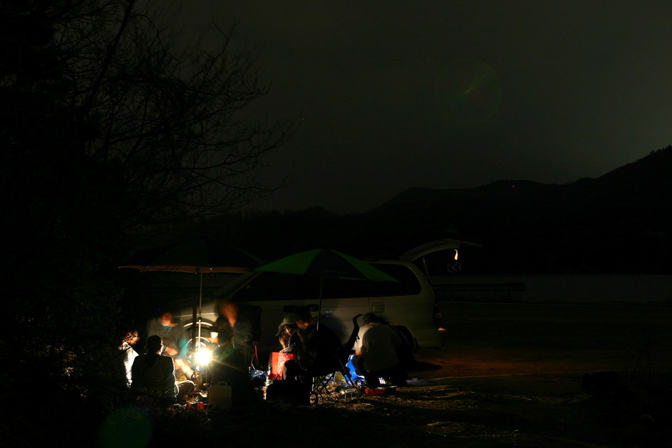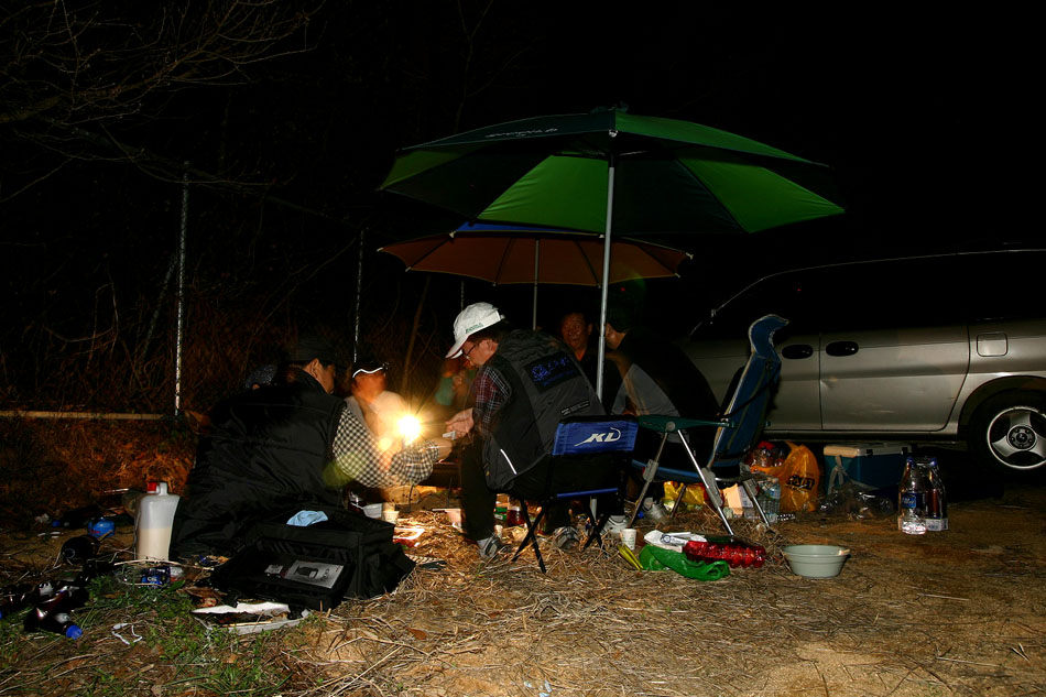 저수지 한 구석에서 저녁식사를 빙자한 수다떨기가 시작되었습니다.