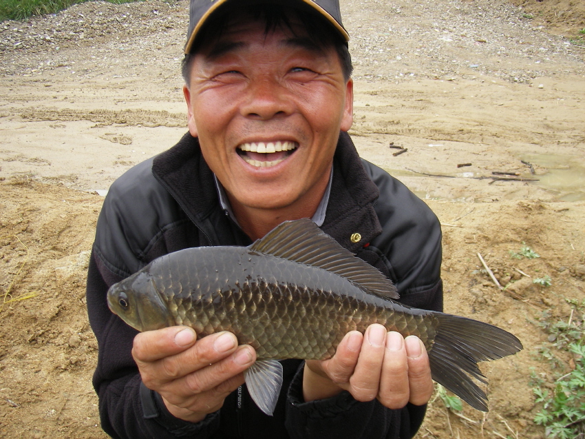 이 난리통에 붕어를 잡았느냐고 물어보니 빙긋이 웃음으로 대답한다.