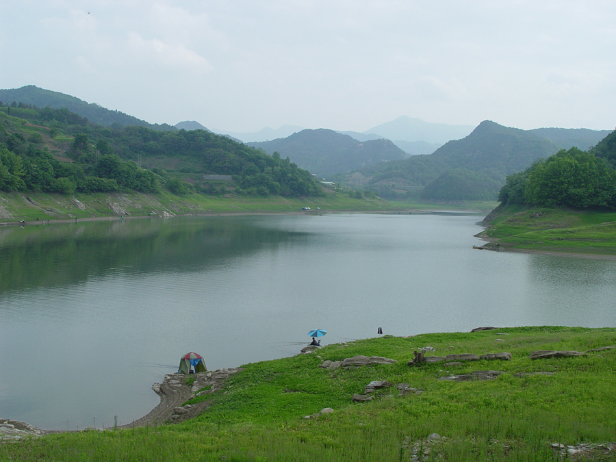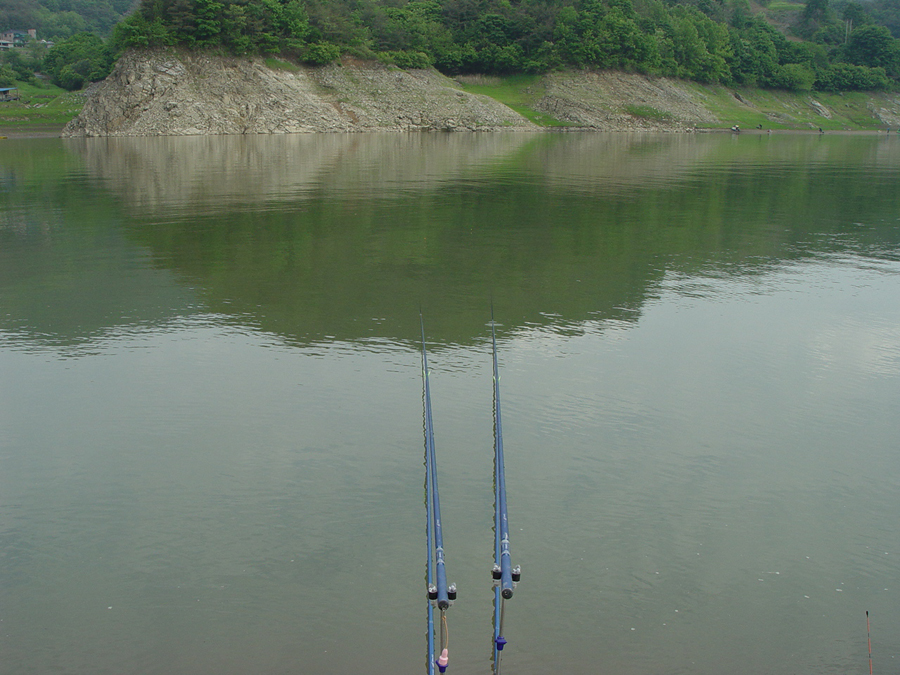 철수길에 일죽 제일낚시 특파원점의 안내로 앙성면 소류지에서 머리를 식히고 있습니다.