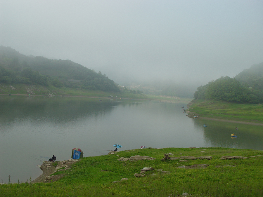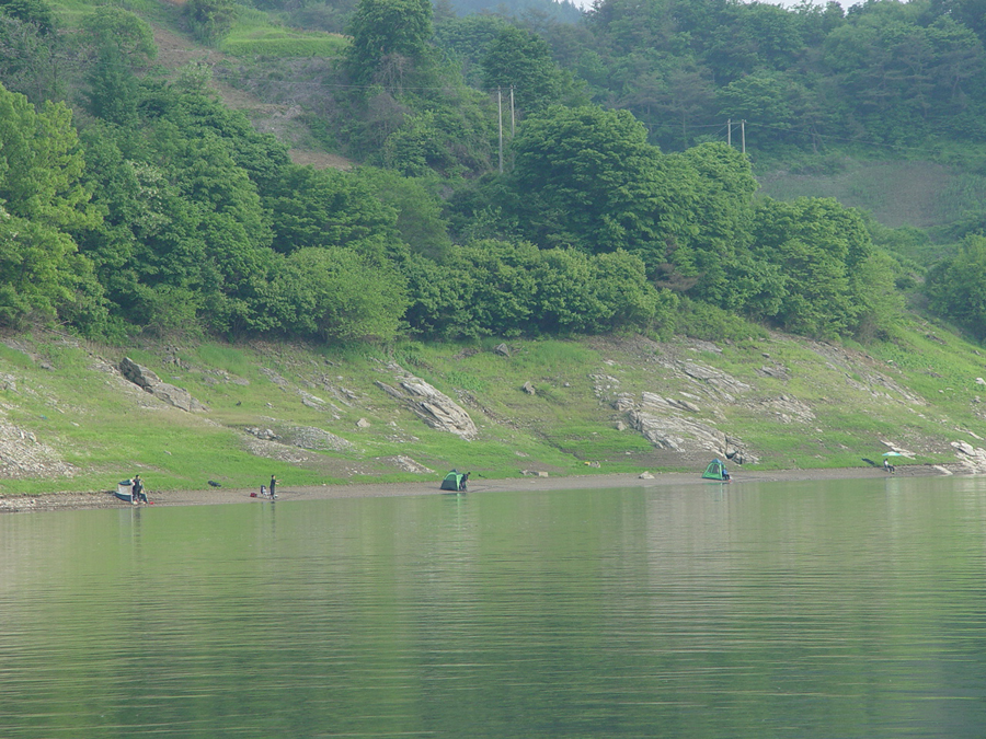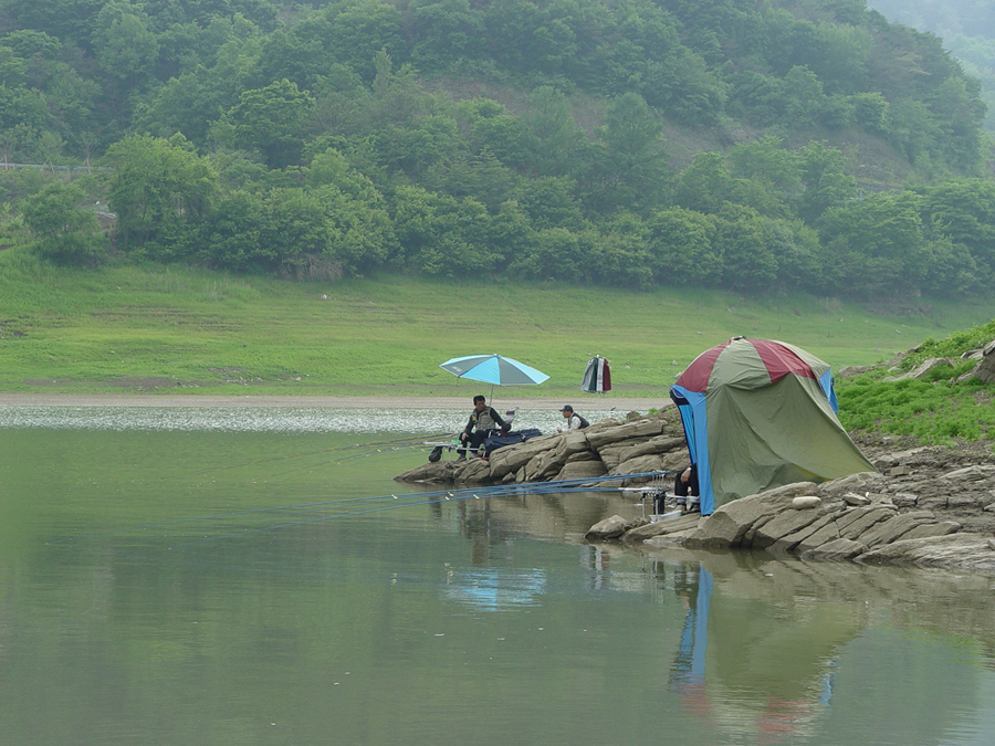 낮부터 골짜기에 진을 친 보트 낚시인들의 낚싯대 역시 아무런 변화가 없어 보인다.