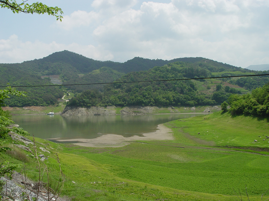 소류지 배수되지 않은 곳을 부탁드려 앙성면에 위치한 소류지에 차를 세운다.