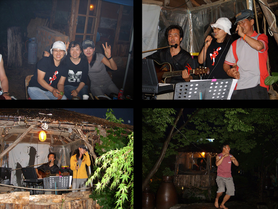 집사람과 아들을 태우고 비 내리는 토요일 저녘 서해안 고속도로를 달려 회원들이 묵고 있는 상류 파라다이스 펜션에 도착하니