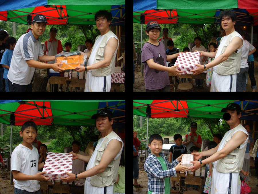 파라다이스 펜션 아들도 선물을 줍니다. | 어부인들에게도 선물을 전달합니다. | 4등 황금돼지입니다. | 5등 예사랑 어부인님 (입상자 중 홍일점)