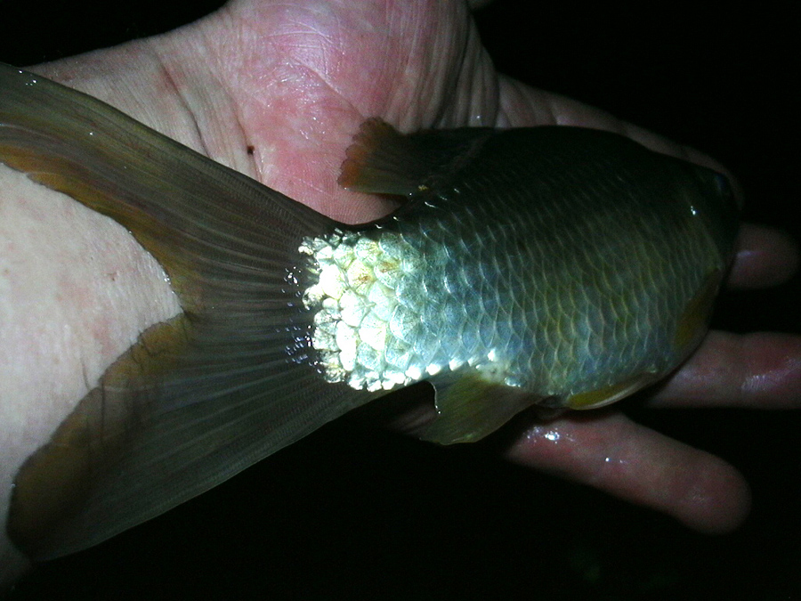 반가움에 헤드랜턴을 켜보니 허걱~! 긴꼬리 붕어다~^^*