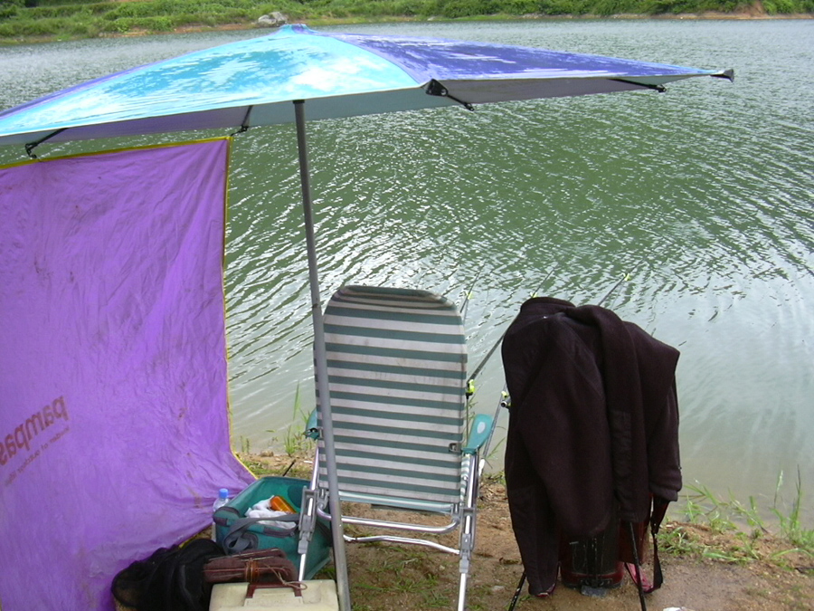 비 바람 때문에 중무장한 필자의 낚시자리~^^*