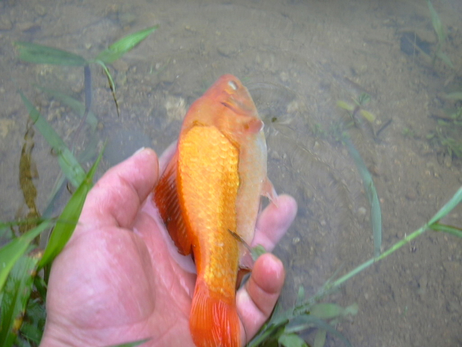대물조사의 첫 수.. 7치급의 긴꼬리붕어 꼬리가 3치급~^^*