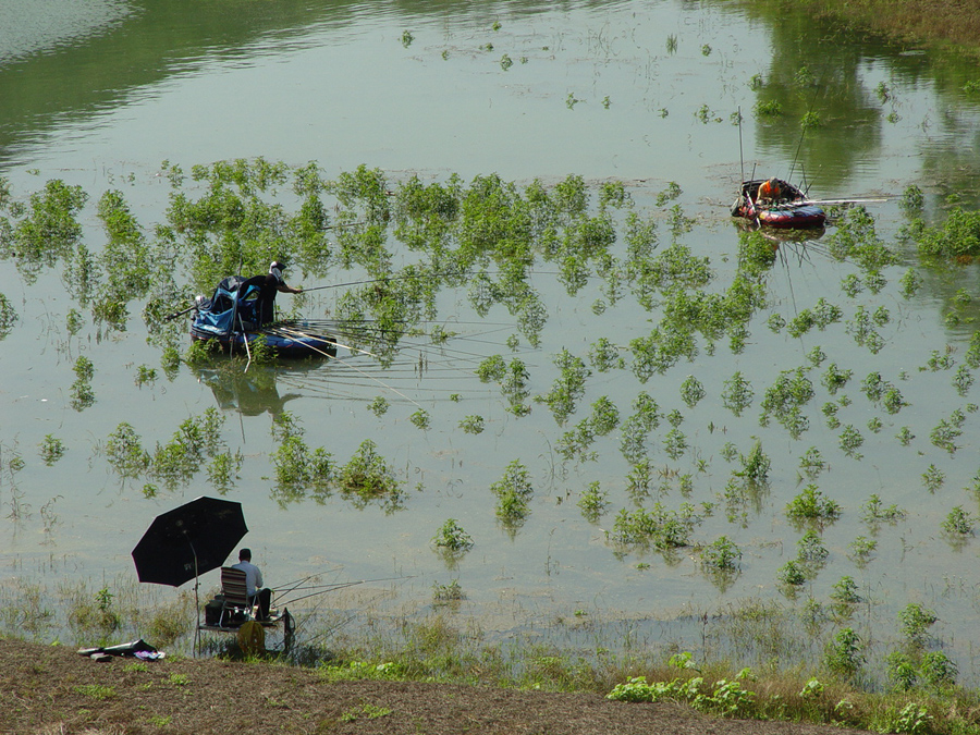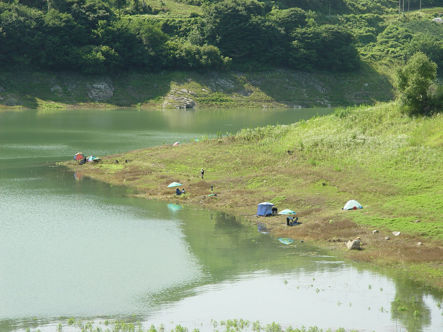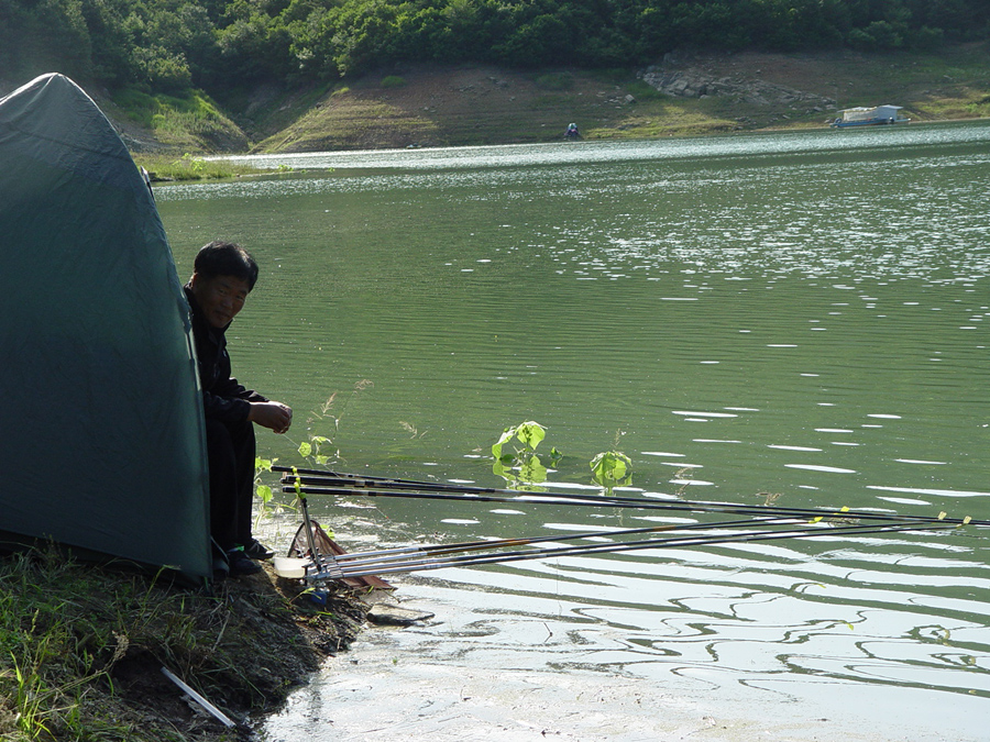 상류 육초대에서는 보트낚시를 하는 조사가 낮에도 간간히 큰 씨알의 붕어를 걸어 내는 것을 목격할 수 있었다.
