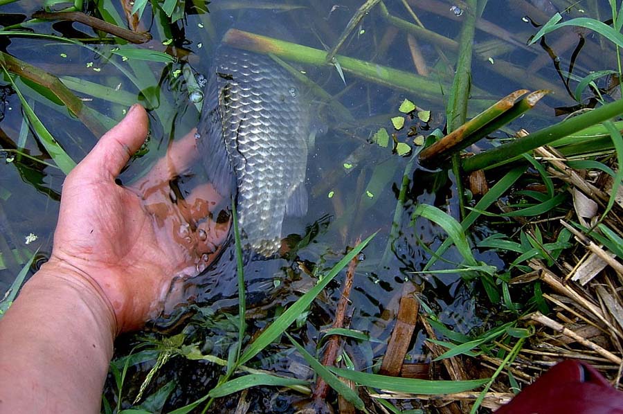 월척급 붕어가 나온 곳이 연안의 마름과 부들 경계선으로 현재 회유를 하는 길목이다는 판단아래 재빨리 정비하여 투척을 하고