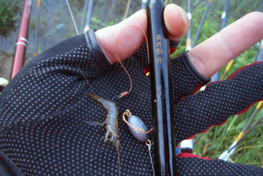 미끼는 낚시대 편성전에 채집망을 담가놓아 자생새우를 잡아 썼습니다.