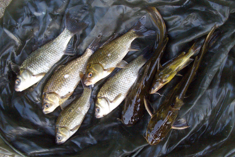 오늘도 덩어리가 없네요! 6치급에서 7치급 정도의 붕어와 월척만한 빠가사리입니다. ㅜ.ㅜ