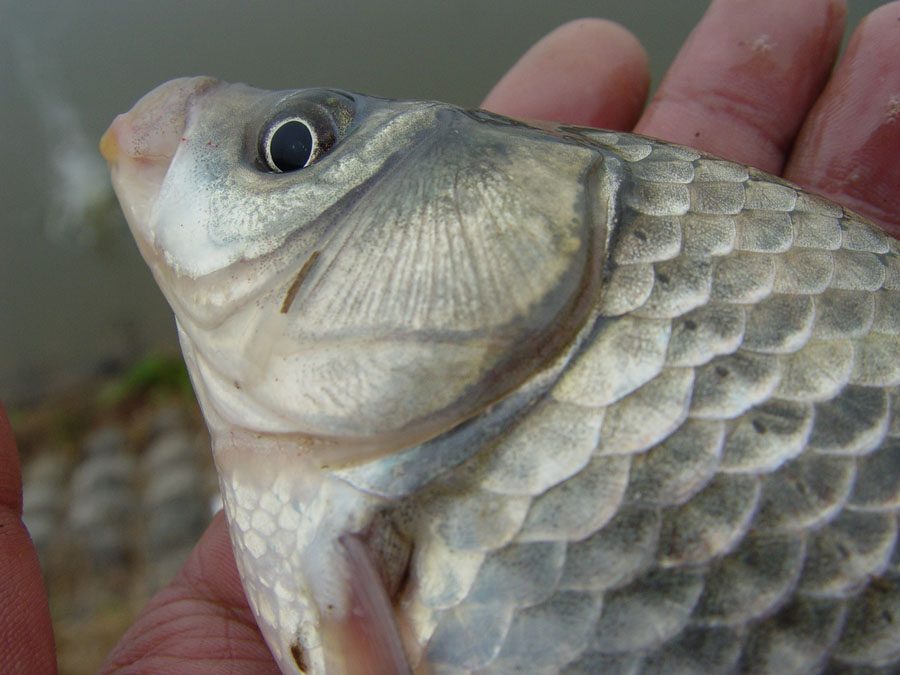 모자에 달린 후레쉬를 비춰보니 언뜻 보기에 얼굴이 삼각형으로 솓아 올른 것을 보니 잉어가 아닌가 싶다.