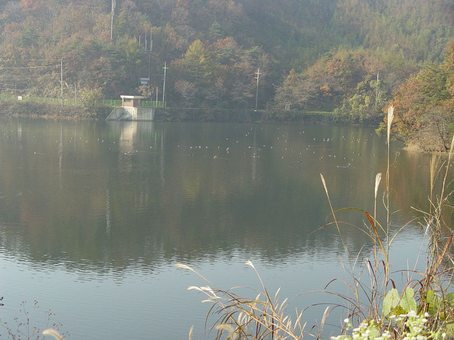 옥성지 하류권에는 많은 철새들이 휴식을 취하고 있습니다
