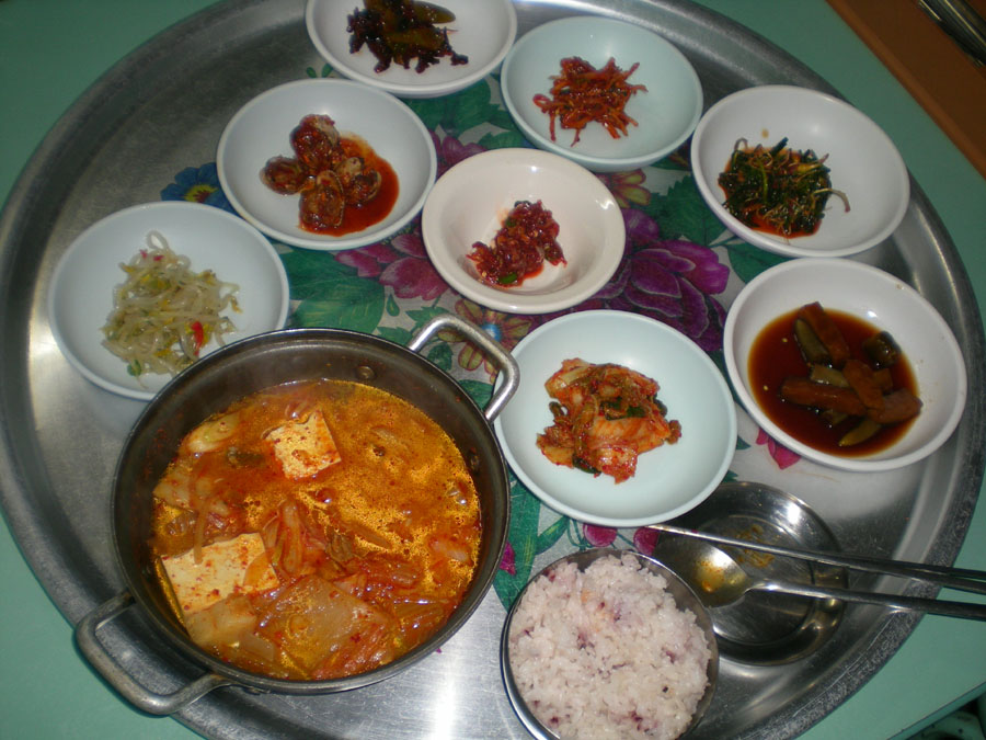 밤늦게 남포지 도착... 김치찌게로 허기를 채우고...