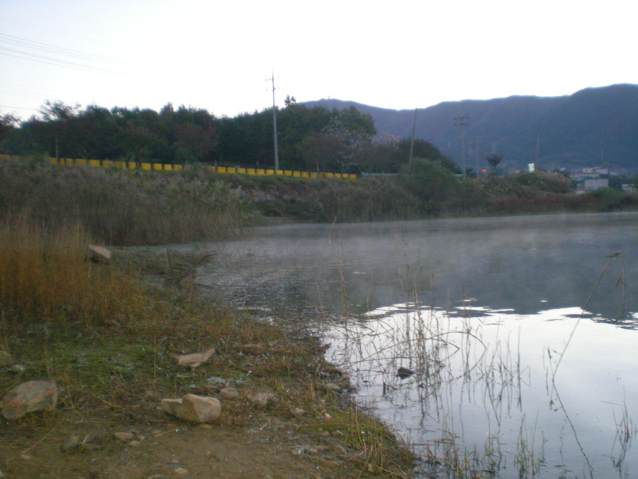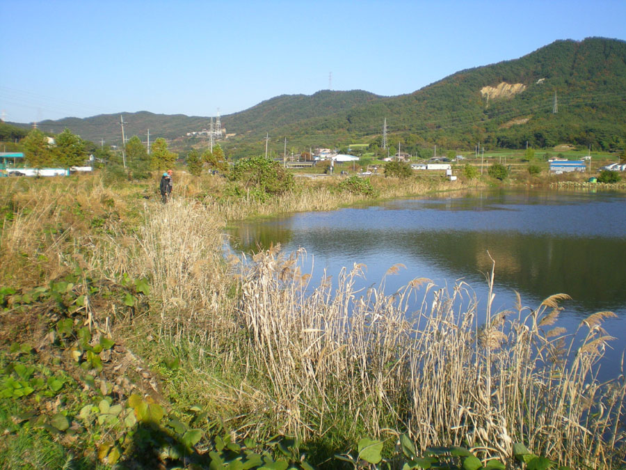 송학지 도착... 제방 오른쪽 소진곳에 진지를 구성하고...