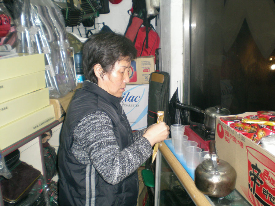 사모님이 손님들께 따뜻한 커피한잔 대접합니다.