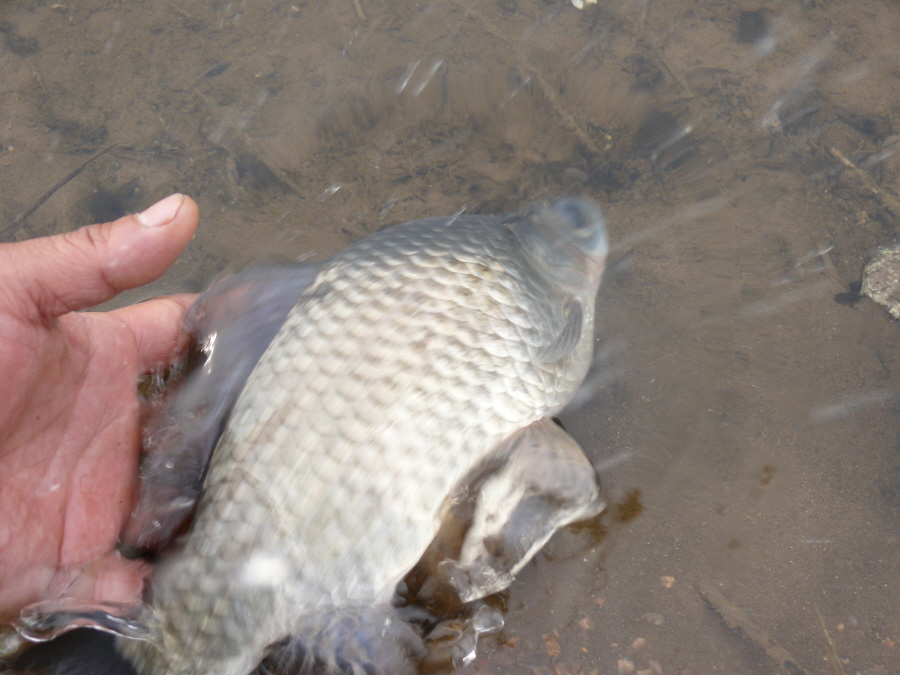 구찌님이 한번 입질로 걸어낸 3마리 붕어 중 두마리입니다.