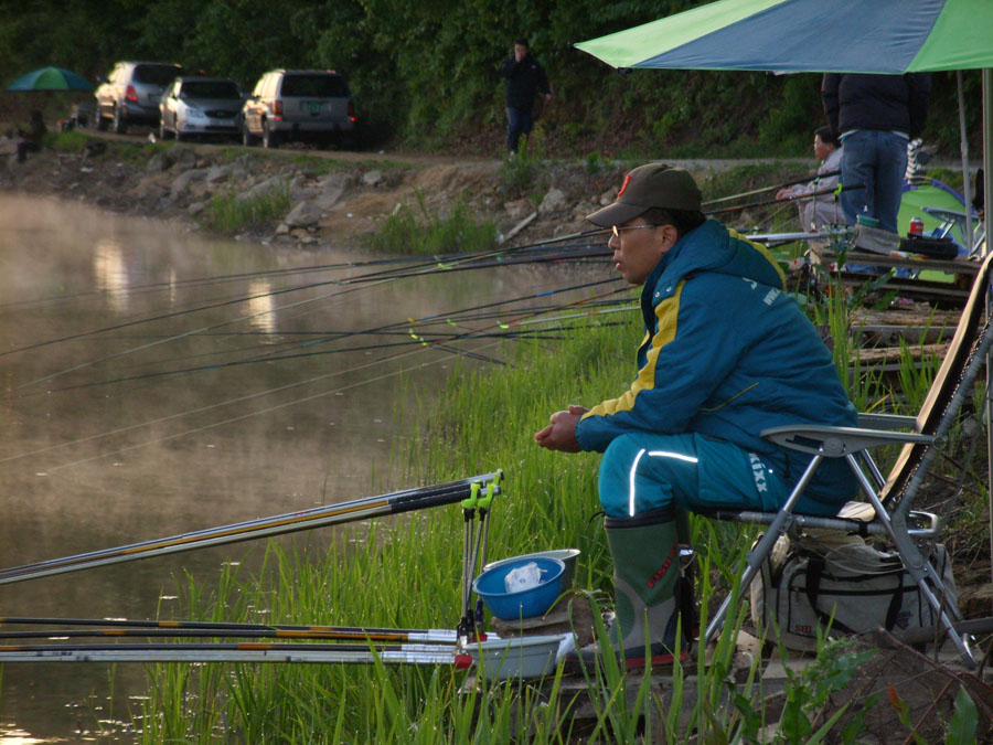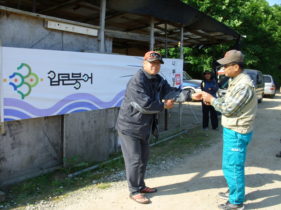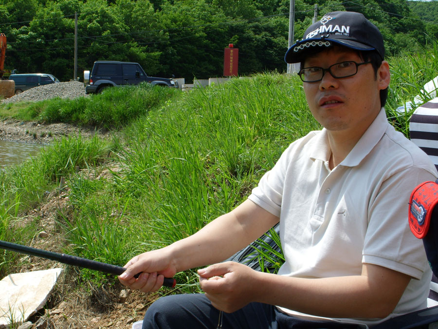 반가움에 인사를 나누고 필자도 상류 물이 유입되는 조금 아래의 포인트에 장대 1대를 채비하여 외바늘로 미끼를 투척한다.