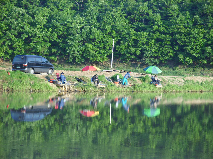 그러던 아침 7시경 상류로 낚시를 오신 조사님께서 채비를 하고 얼마지 않아 월척급 붕어를 낚아내신다.